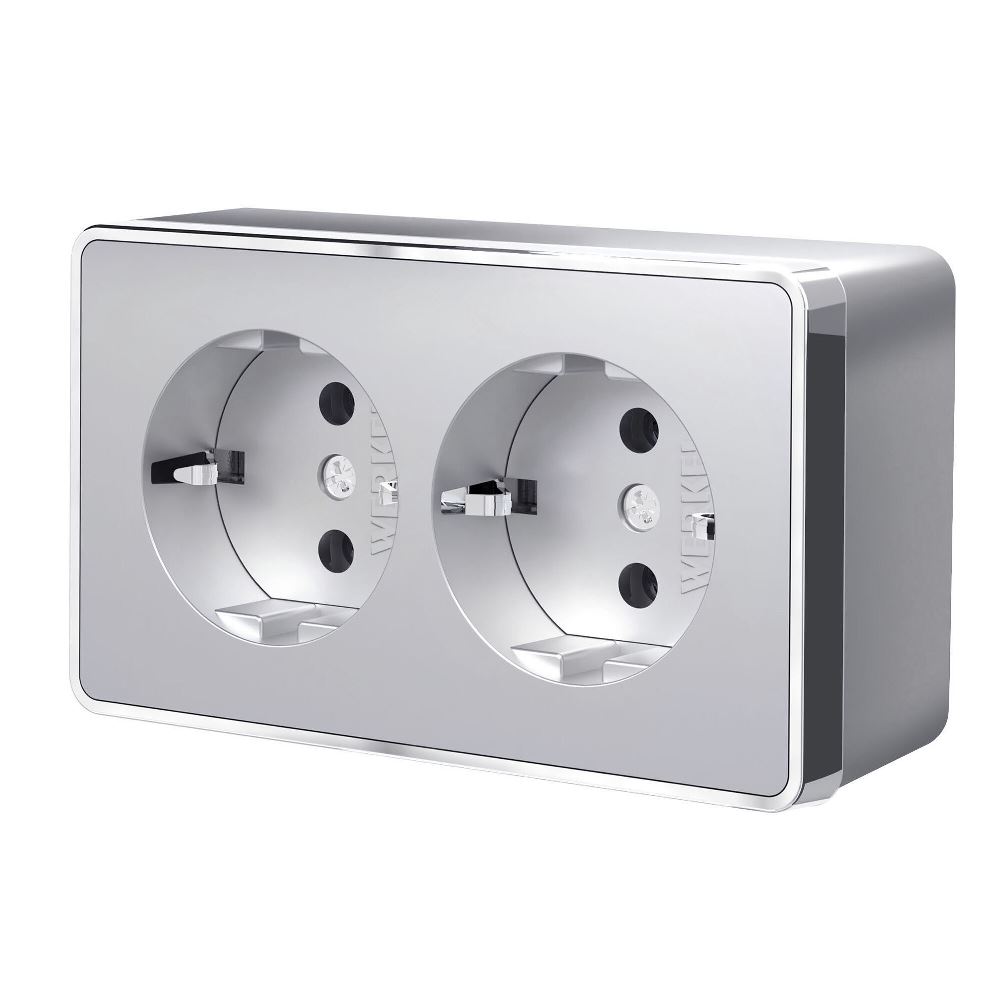 Розетка накладная двойная Werkel Gallant с заземлением Серебряный W5072106
