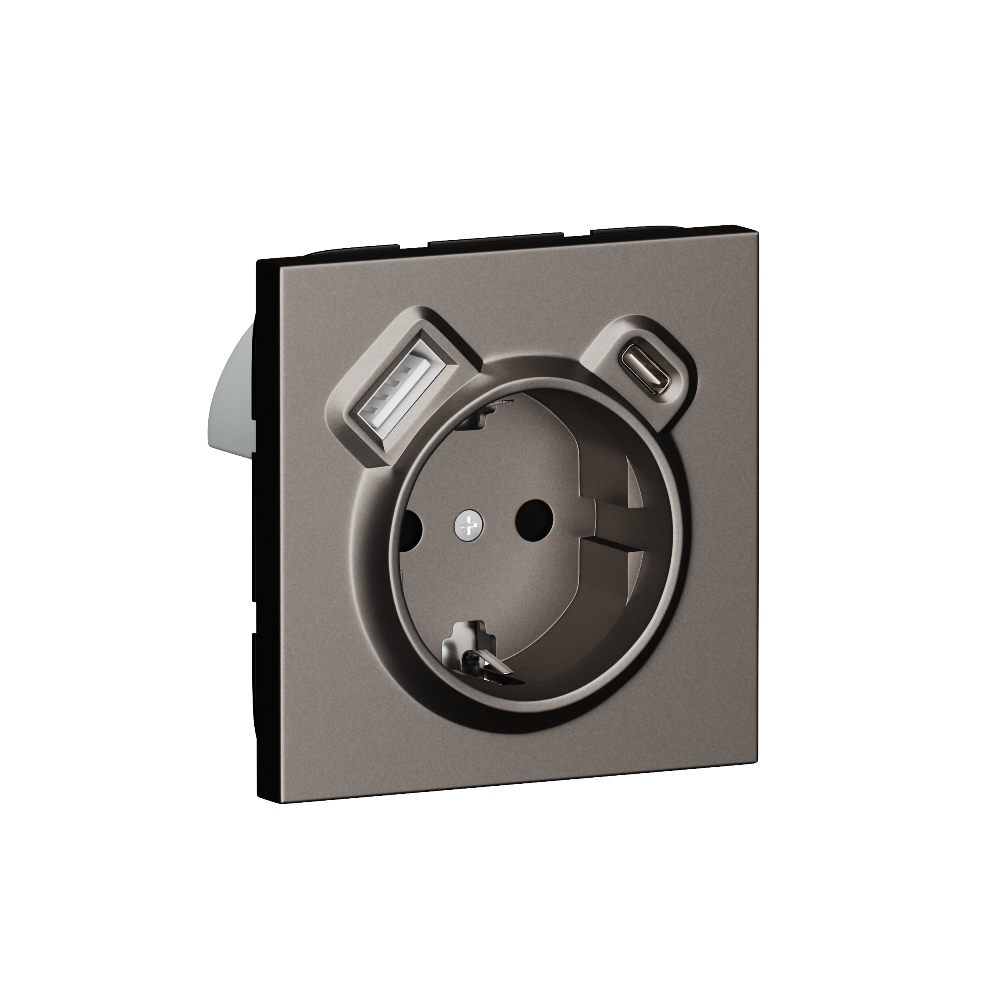 Розетка встраиваемая Donel R98 с заземлением и шторками + зарядка USB A+C 20W Сталь матовая DA15500-DA22237