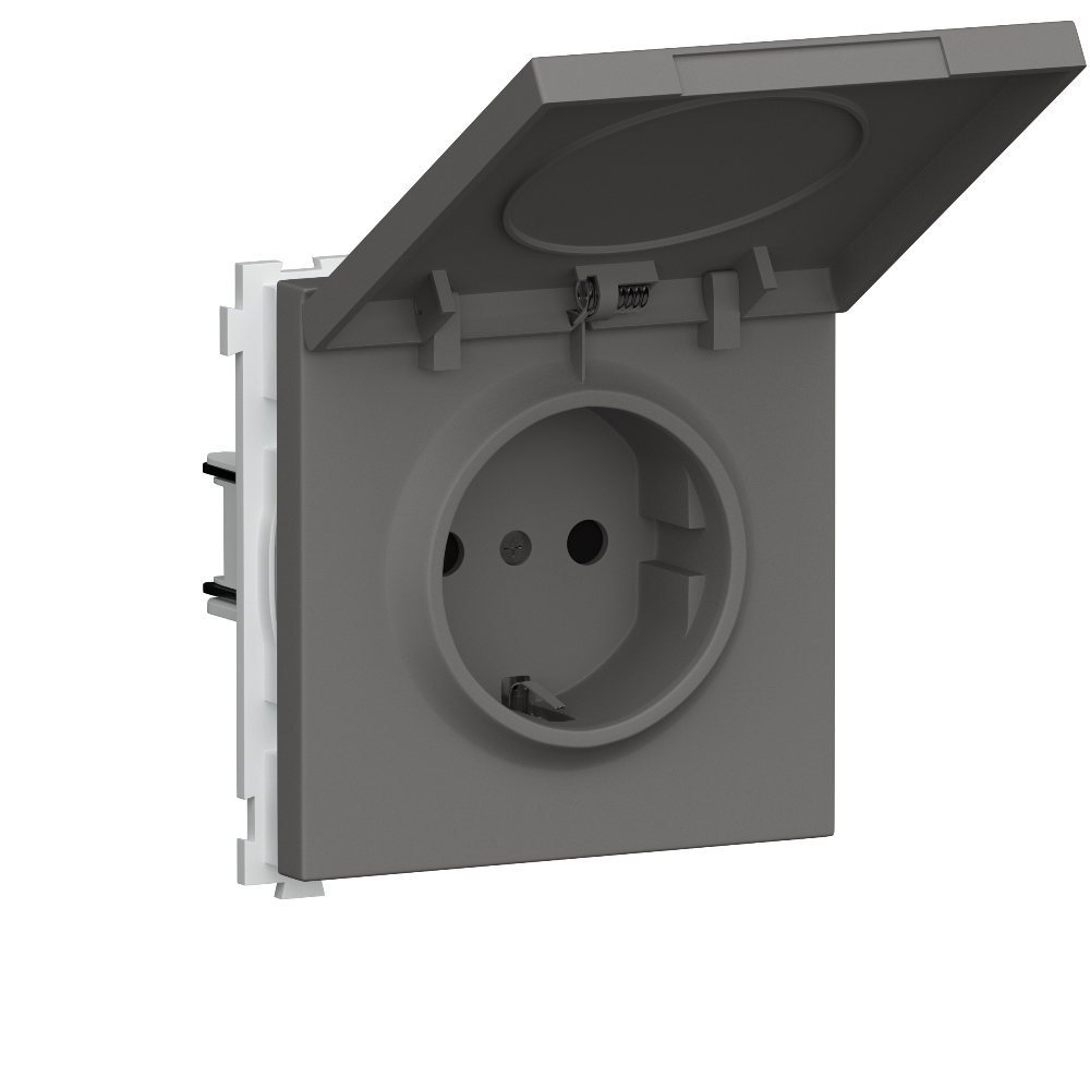 Розетка встраиваемая Donel R98 Schuko с крышкой и заземлением на клеммах Шоколад матовый DA17700-DA52042