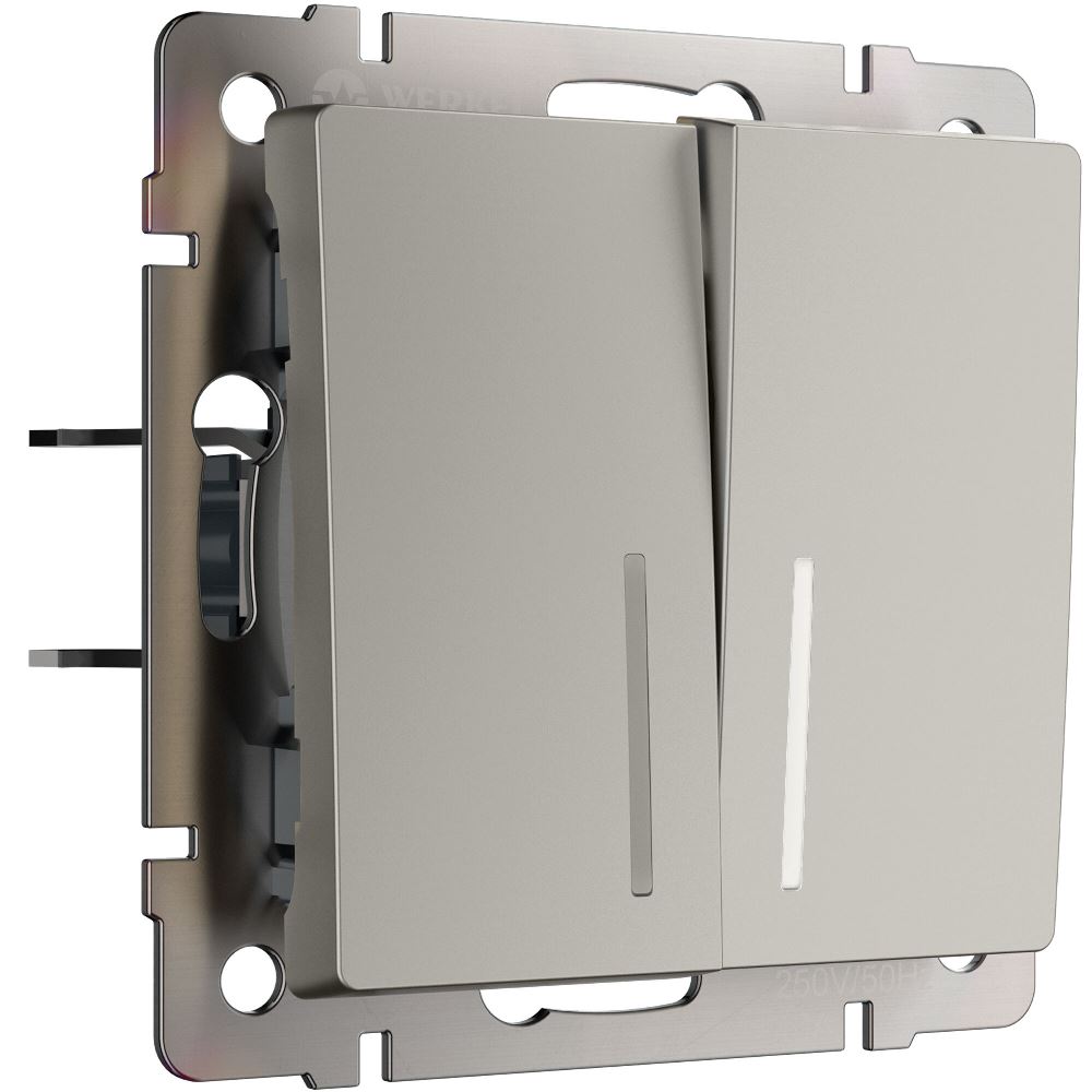 Выключатель двухклавишный встраиваемый проходной Werkel с подсветкой Дымчатый W1222104